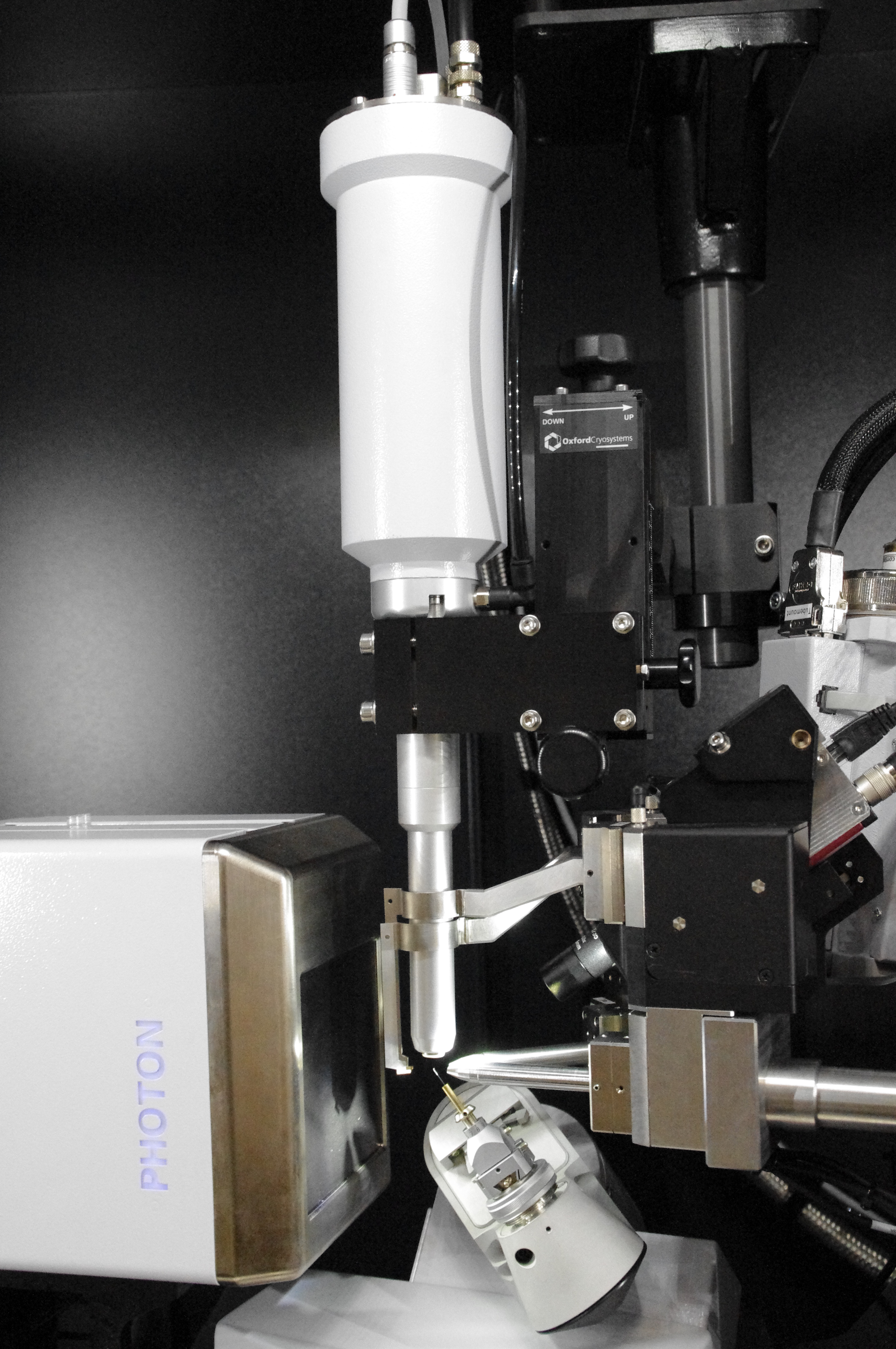 Our machine is equipped with a Kryo-Flex unit. With it, samples can be cooled down to 90 K (-183°C).