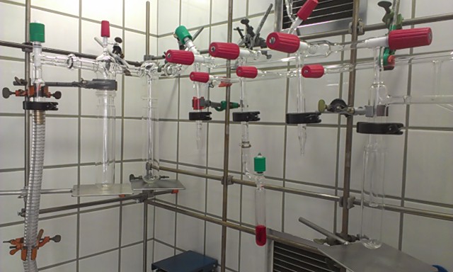 Crystallise! AG runs an independent chemical laboratory. Our lab is equipped with two fume hoods and a high vakuum Schlenk line.
